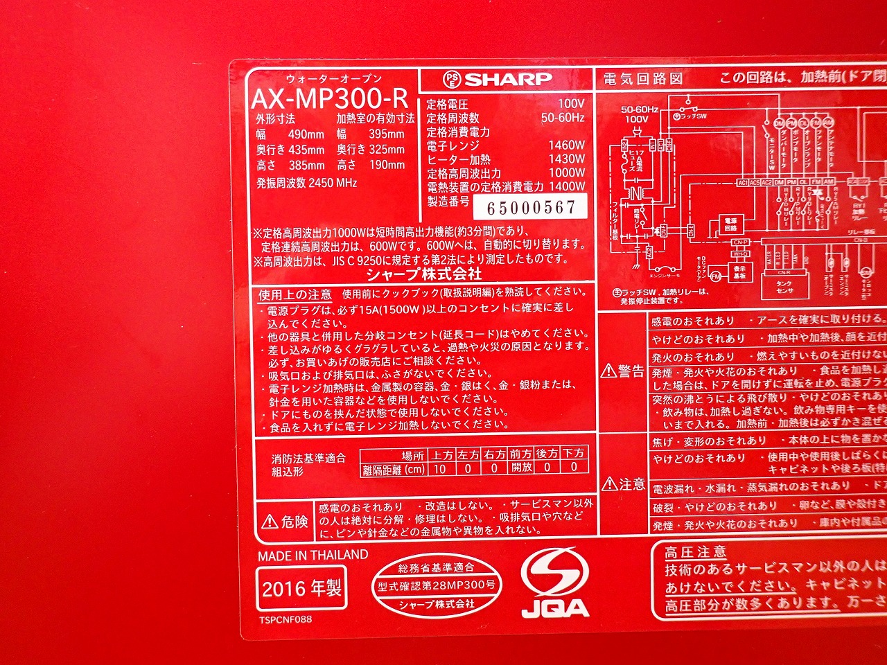 オーブンレンジ オーブンレンジ SHARP HEALSIO AX-MP300-R シャープ ヘルシオ スチーム 電子レンジ ウォーターオーブン 26L レッド 赤 3,000円で買取ました。 2022.02.28 @ 東京都墨田区 川口店